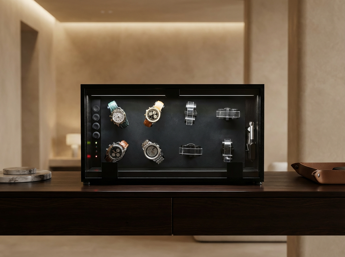 オブジェのようなユニークなフォルムで時計をディスプレイしながら、時計を愛でるメンテナンス時間をお楽しみいただけます。