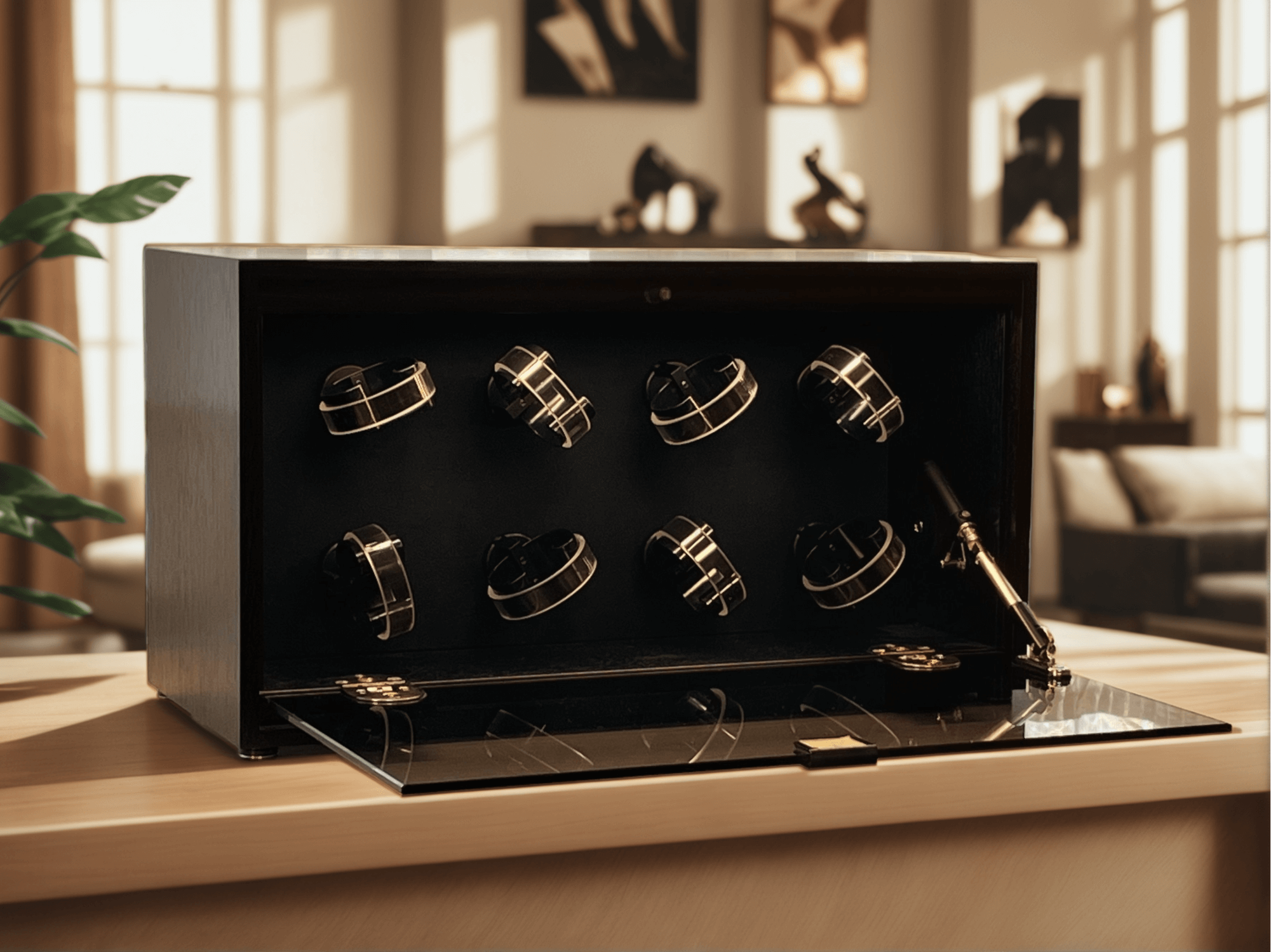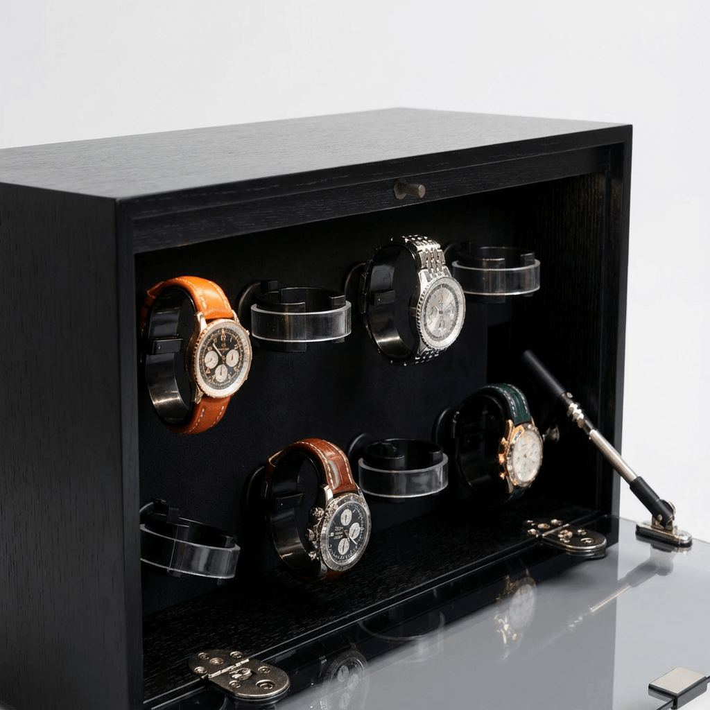 時計を主役として一層際立たせる――ディテールまで高級感漂うワインディングマシーンです。