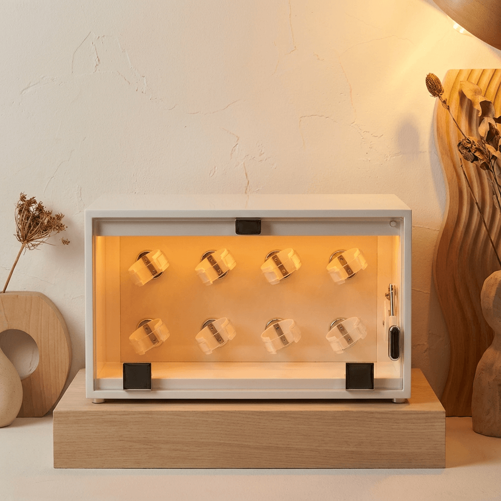 複数本の時計を並べると、圧巻のショーケースに。大切な時計コレクションを埃などから守りながら、いつでも使える良好な状態に保ちます。