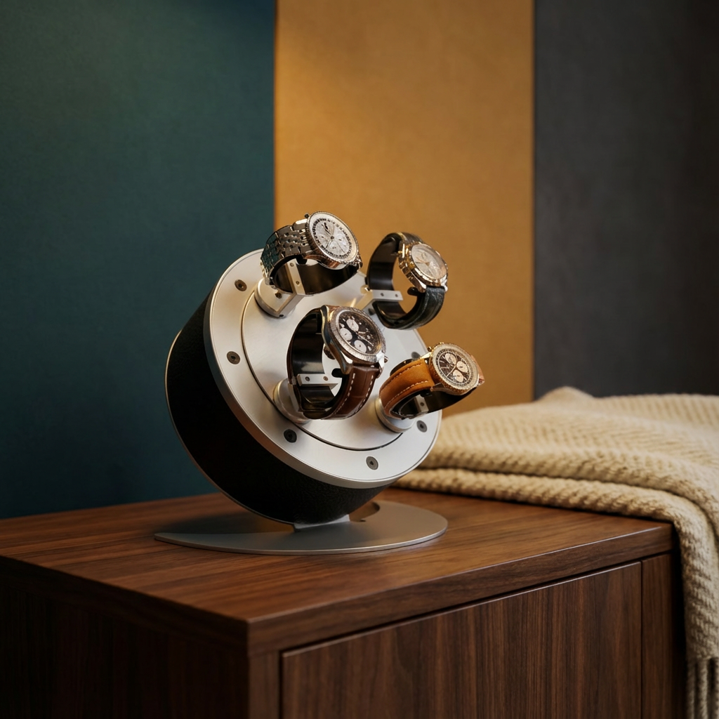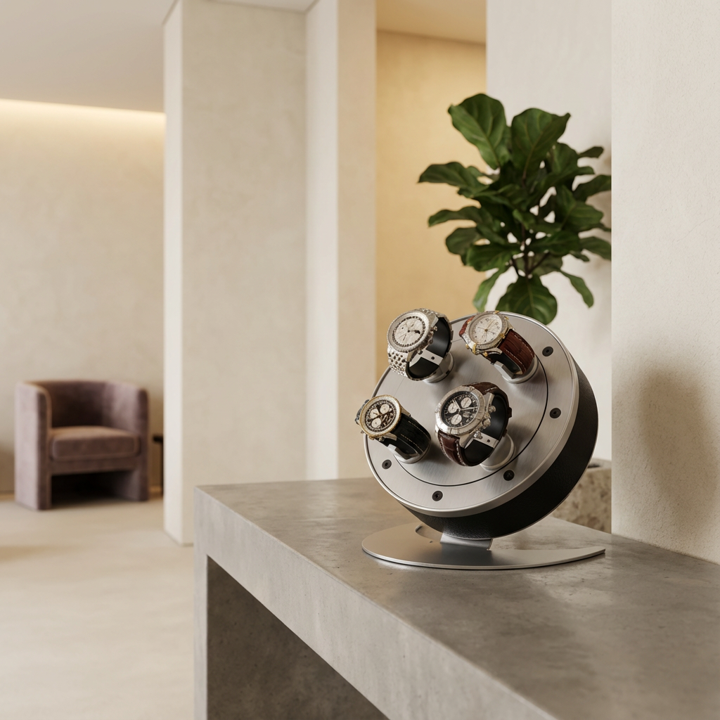 オブジェのようなユニークなフォルムで時計をディスプレイしながら、時計を愛でるメンテナンス時間をお楽しみいただけます。
